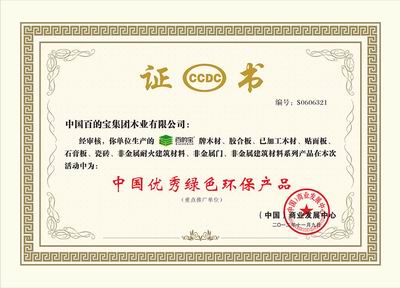 百的寶板材于2012年11月9日榮獲“中國優(yōu)秀綠色環(huán)保產(chǎn)品”。(圖)