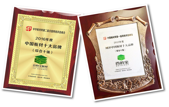 繼2015年和2016年榮獲中國板材品牌(綜合十強)之后,百的寶板材梅開三度,今年再次將此殊榮收入囊中!